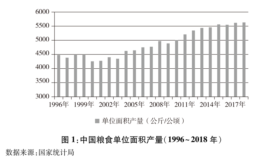 图1:中国粮食单位面积产量(1996~2018年) 新华社发