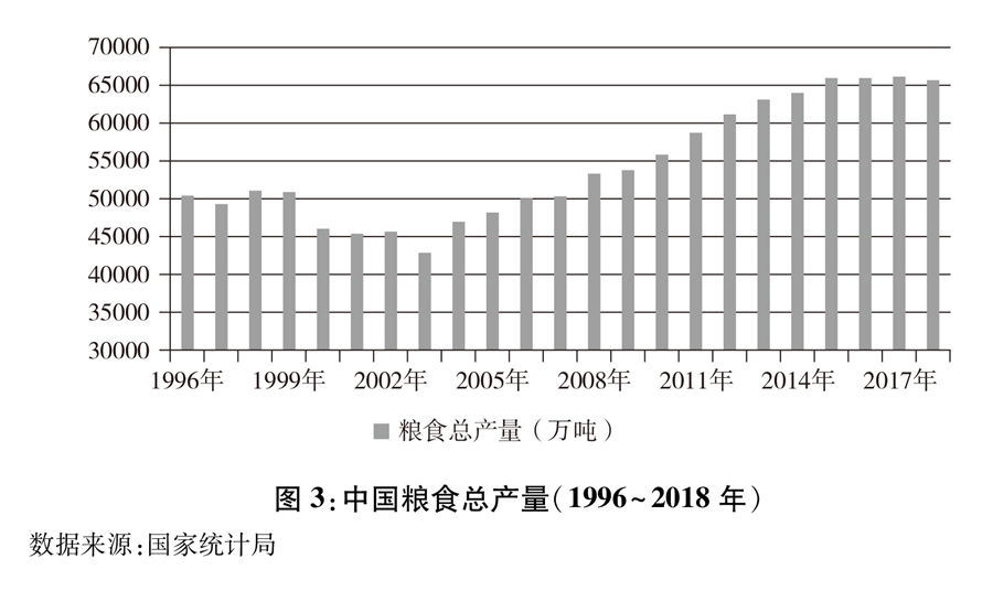 图3:中国粮食总产量(1996~2018年) 新华社发