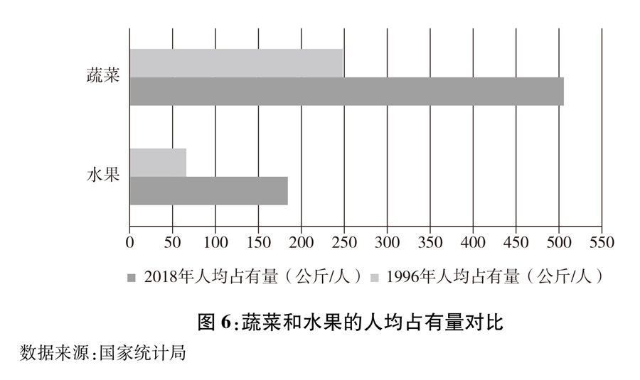 图6:蔬菜和水果的人均占有量对比 新华社发