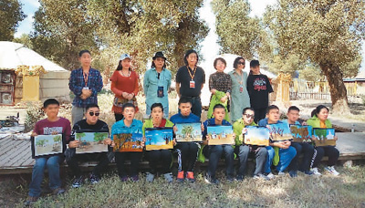 9月27日,又一全国残障少年儿童艺术创作基地在额济纳揭牌,获奖学员将走进额济纳胡杨林,感受胡杨的壮美。揭牌仪式后,10名小画家走进胡杨林,与大画家们一起写生,交流互动。