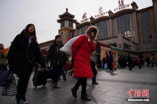 图为旅客们走过北京站前。中新社记者 崔楠 摄