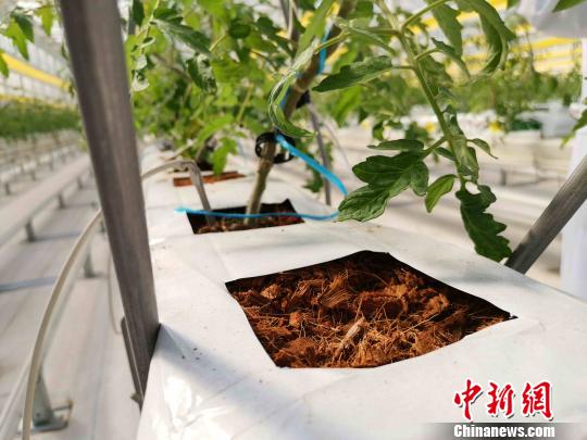 据德州智慧农业产业园相关工作人员杨帅介绍,大棚使用无土栽培的种植方式,在温室内使用悬挂式种植槽,采用椰糠作为栽培基质,给作物施肥时不与地表土壤接触,相对传统温室的地面土壤种植来说,避免了对土壤的污染。