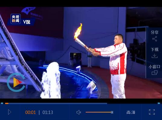 这一刻,全世界军事体育的焦点聚集在武汉,聚集在丝绸环绕丝带交织造型的主火炬塔,聚集在象征荣耀和和平的圣火之上。