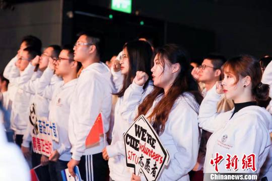 中新网上海10月19日电 (记者 许婧)“向前进·博青春”第二届中国国际进口博览会志愿者上岗宣誓仪式19日在国家会展中心(上海)虹馆举行,5000余名进博会志愿者代表用最真诚、最响亮的青春之声庄严宣誓,表达了践行志愿精神、全心为进博奉献的信心与决心。