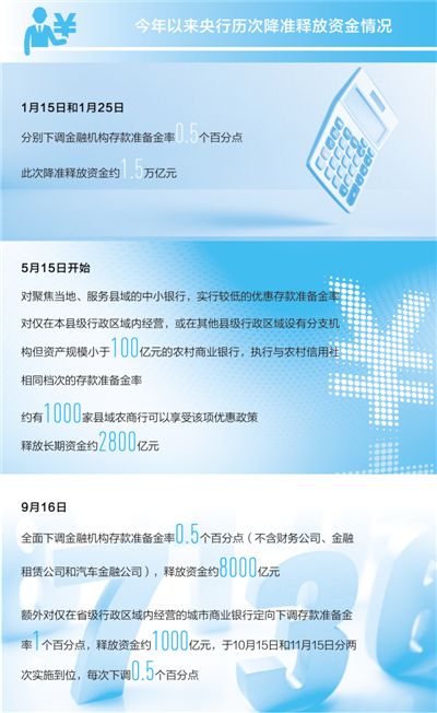 8月20日,全国银行间同业拆借中心首次发布了新的LPR(贷款基础利率),一年期LPR是4.25%,比原来的基准利率降了10个基点。9月16日,年内第二次全面降准落地。10月15日,仅在省级行政区域内经营的城市商业银行获得定向降准0.5个百分点,11月15日还将再次下调0.5个百分点。