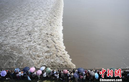 2019年9月,民众观看钱塘江大潮。 王刚 摄