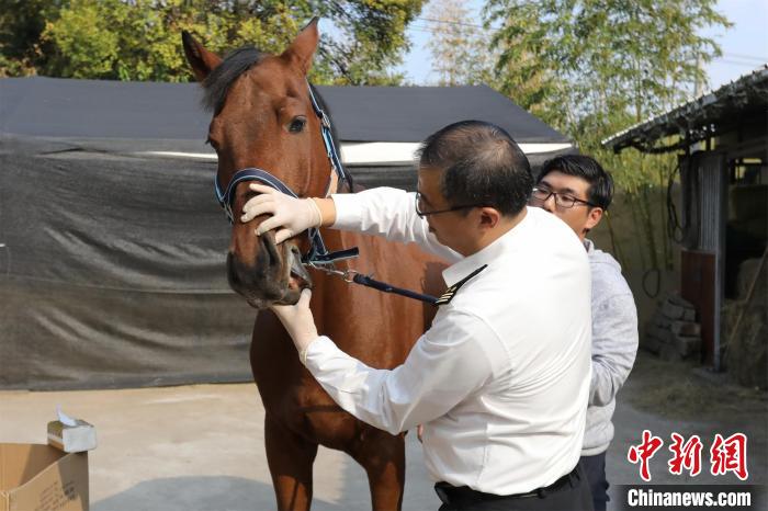 上海海关关员对马匹开展临床检查 陈君言 摄