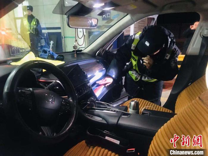 公婆泉边境检查站民警对车辆进行检查。 艾庆龙 摄