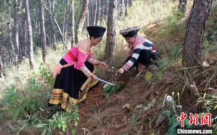 熊国秀和村民采火草。 贾斌 摄
