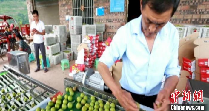 村民将采摘后的茵红李挑选包装。供图