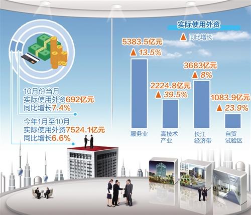 商务部11月18日发布的最新数据显示,今年1月至10月全国新设外商投资企业33407家,实际使用外资7524.1亿元,同比增长6.6%;10月份当月实际使用外资692亿元,同比增长7.4%。商务部外资司司长宗长青表示,数据说明外国投资者对华投资保持了较好的信心和预期,“比较乐观地判断,全年‘稳外资’目标能够实现”。