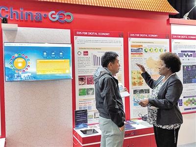 在地球观测成果展览中国展区,记者看到了中国今年9月发射的“三极遥感星座观测系统”首颗试验卫星——冰路卫星,同时展出的还有风云卫星、海洋卫星、环境卫星以及以吉林一号卫星为代表的一批商业卫星。现场解说员自豪地告诉记者,中国是航天大国,位于全球地球观测领域的第一梯队,比如中国利用卫星遥感技术在预测全球大宗农产品产量方面与欧美技术并驾齐驱,也为非洲发展中国家提供技术支持。中国卫星遥感技术还在检测植被生长情况和吸收的二氧化碳量、监测全球土地退化情况、精准扶贫等方面发挥了重要作用。