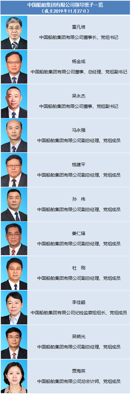 在宣布正式成立的同时,中国船舶集团有限公司领导班子也随之明确。
