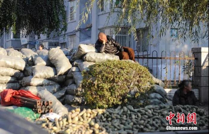 资料图:在东北的冬天有储存冬菜的习惯。每年进入10月,菜农就会拉着一车车的冬储菜,在城区指定地点销售。张瑶 摄