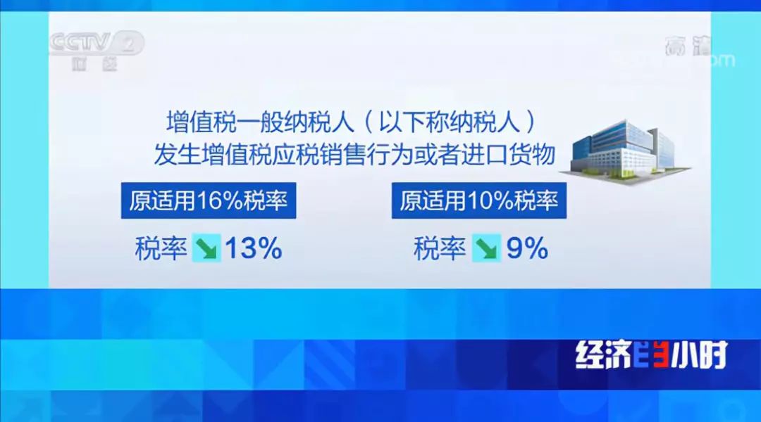 2019年4月1日,财政部、税务总局、海关总署联合发布的《关于深化增值税改革有关政策的公告》中明确指出,增值税一般纳税人发生增值税应税销售行为或进口货物,原适用16%税率的,税率调整为13%;原适用10%税率的,税率调整为9%。