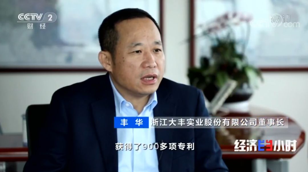 浙江大丰实业股份有限公司董事长 丰华:我们累计获得了900多项专利,其中发明专利有100多项,这个数字是比我们目前的同行加在一起的数量还要多。