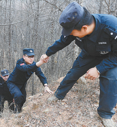 队员们互相帮助,翻山越岭。本报记者 张 枨摄