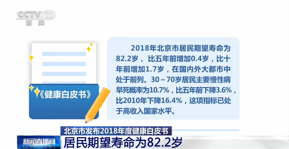 央视网消息:昨天(24日),北京市卫生健康委发布了《北京市2018年度卫生与人群健康状况报告》,简称健康白皮书。这是北京市连续第十年面向社会公开发布本市居民健康状况和卫生健康事业发展的相关数据。