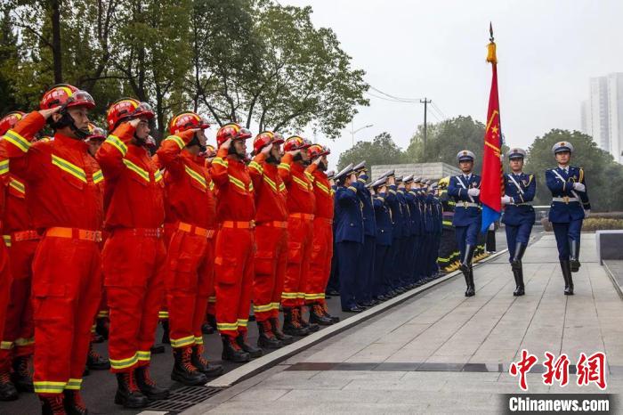 12月30日,安徽省消防救援总队举行迎中国消防救援队队旗仪式。 王玉舟 摄