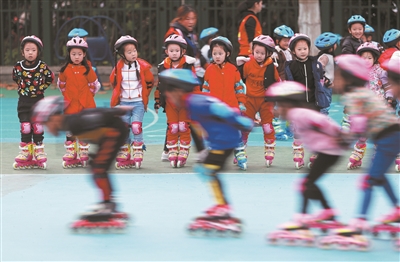 哥哥姐姐们熟练的滑行动作,深深地吸引了轮滑课后延时服务初级班孩子的目光。过不了多久,他们也能够驰骋轮滑赛场了。