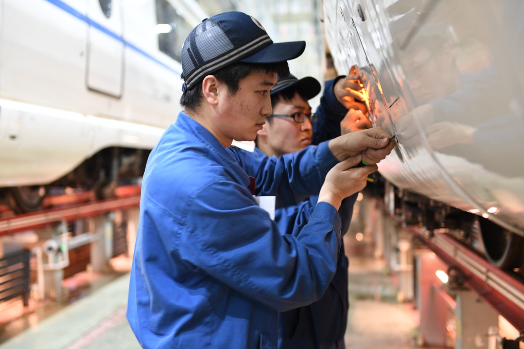 图为沈阳局集团有限公司职工精心检修动车组。李季春/摄