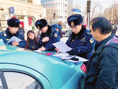 日前,我市和平交警联合市交通运输委等部门,在鞍山道与新兴路交口总医院周边联合执法,加强对路面出租车、网约车等客运车辆交通安全隐患排查,要求存在交通安全隐患的车辆采取整改措施,确保安全。