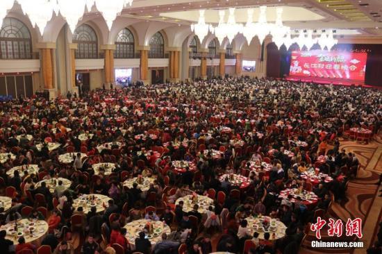 资料图:2019年2月江苏江阴长江村邀3000余名村民共享团圆年夜饭。 高静 摄