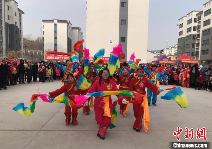 图为七里店安置小区内,为迎接春节,村民们还表演着社火。 孙睿 摄