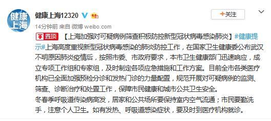 目前,上海市各类医疗机构已全面加强预检分诊和发热门诊的力量配置,规范开展对可疑病例的监测、筛查、诊断治疗和处置工作,保障市民健康和城市公共卫生安全。
