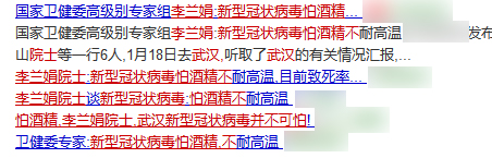 第二个新闻标题是:“怕酒精,李兰娟院士,武汉新型冠状病毒并不可怕”。
