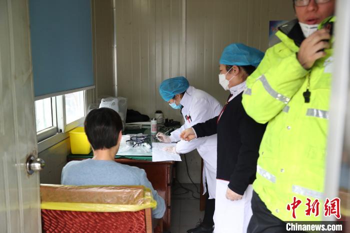 护士用耳温仪对车内人员测量体温。 张亨伟 摄