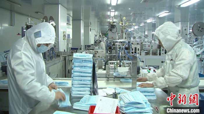 中新网宁波1月24日电(记者 林波 项菁)成卷无纺布被自动切割成口罩的外形,叠压后自动接上耳带,经过消毒等程序包装成品……1月24日,农历除夕,在万家团圆时,位于浙江绍兴的振德医疗用品股份有限公司(以下简称“振德医疗”)的工人们却仍坚守在生产一线。
