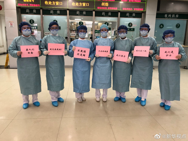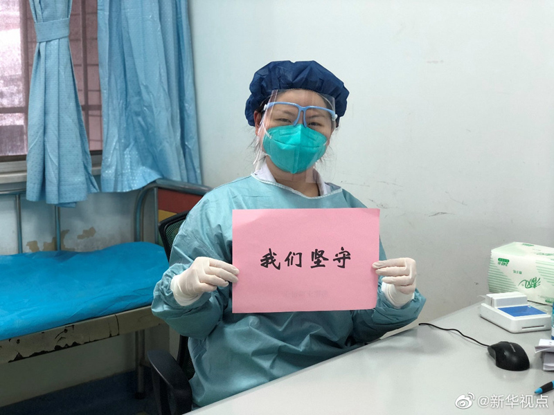 “不畏惧、不退缩”“我们坚守” “亲人们,勿念。”除夕,武汉同济医院儿科医护人员在交班间隙拍了几张特别的拜年照片发给家人和同事,为武汉市的医务人员加油,也让家人放心。除夕,本应是阖家团圆的时刻,但因为突如其来的疫情,许多医务人员必须坚守在临床第一线。为了让父母放心,让丈夫安心,也为了给全市坚守在最前线的医护同行加油鼓劲,今天交班时,她们拍下了这样一组照片。(记者李劲峰、胡喆)