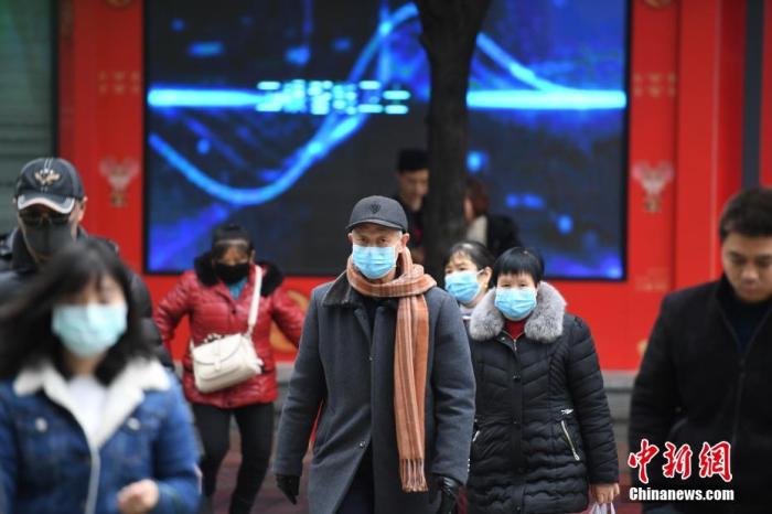 资料图:街头众多民众戴着口罩出行。陈超 摄