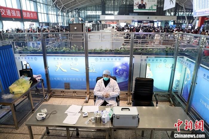 资料图:武汉火车站进站大厅里的体温检测点。中新社记者 张畅 摄