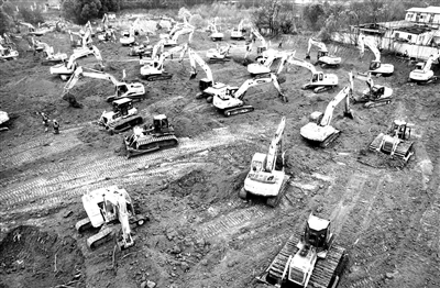 23日晚上10点,部分施工人员已经先行进场施工。上百台挖掘机、推土机等施工机械从全市各处赶来,通宵进行场平、回填等施工,“先行进场施工的队伍主要负责建设前期工作,比如拆除原有的建筑物,将土地清理平整等”。