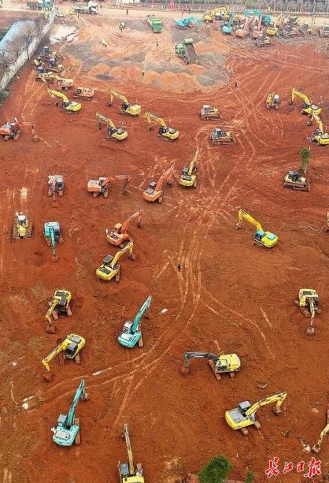 经过一天一夜连续奋战,截至24日晚,火神山医院项目累计平整全部场地5万平方米,相当于7个足球场大小,内转土方15万立方米,足以填满57个游泳池,一座小土山已被连夜铲平,碎石回填于除夕夜完成,25日可开始主体施工。