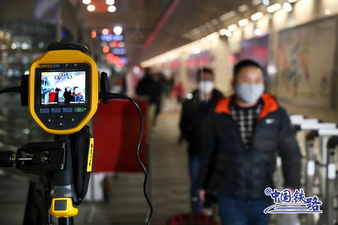 北京局集团公司在主要车站和列车配备红外线智能体温检测设备及手持测温仪,定时对候车室、旅客列车进行消毒。
