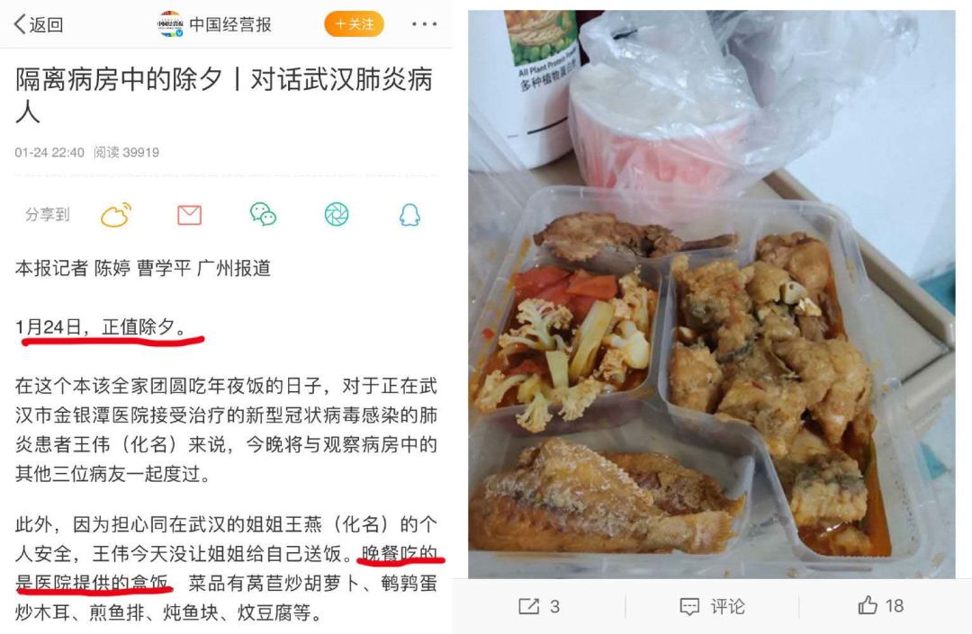 驻守在湖北武汉同济医院里的医生们的年夜饭有些特殊,因为外卖停止配送,医院给医生们准备了快餐食品,包括方便面蛋黄派饼干。心脏大血管外科的程医生说,这已经很丰富了,祝愿大家春节快乐。
