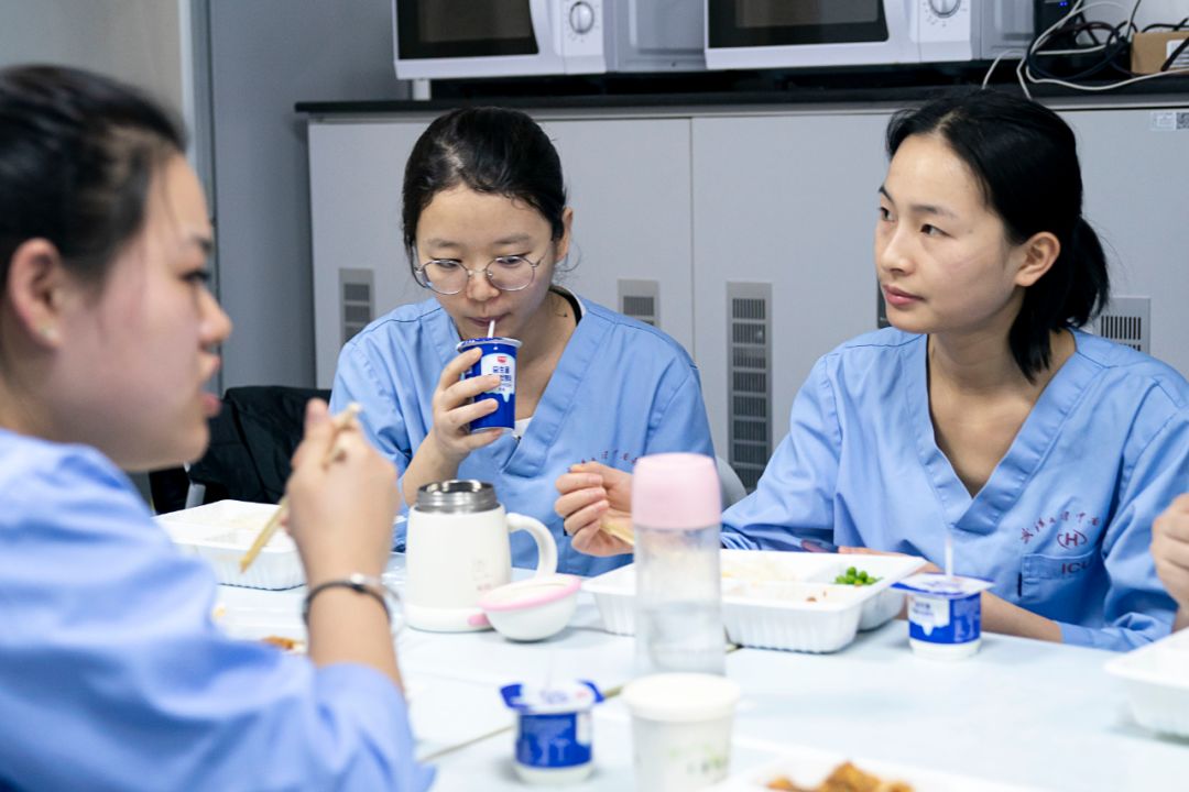 1月24日,武汉大学中南医院重症医学科的医护人员在办公室吃年夜饭。新华社记者 熊琦 摄