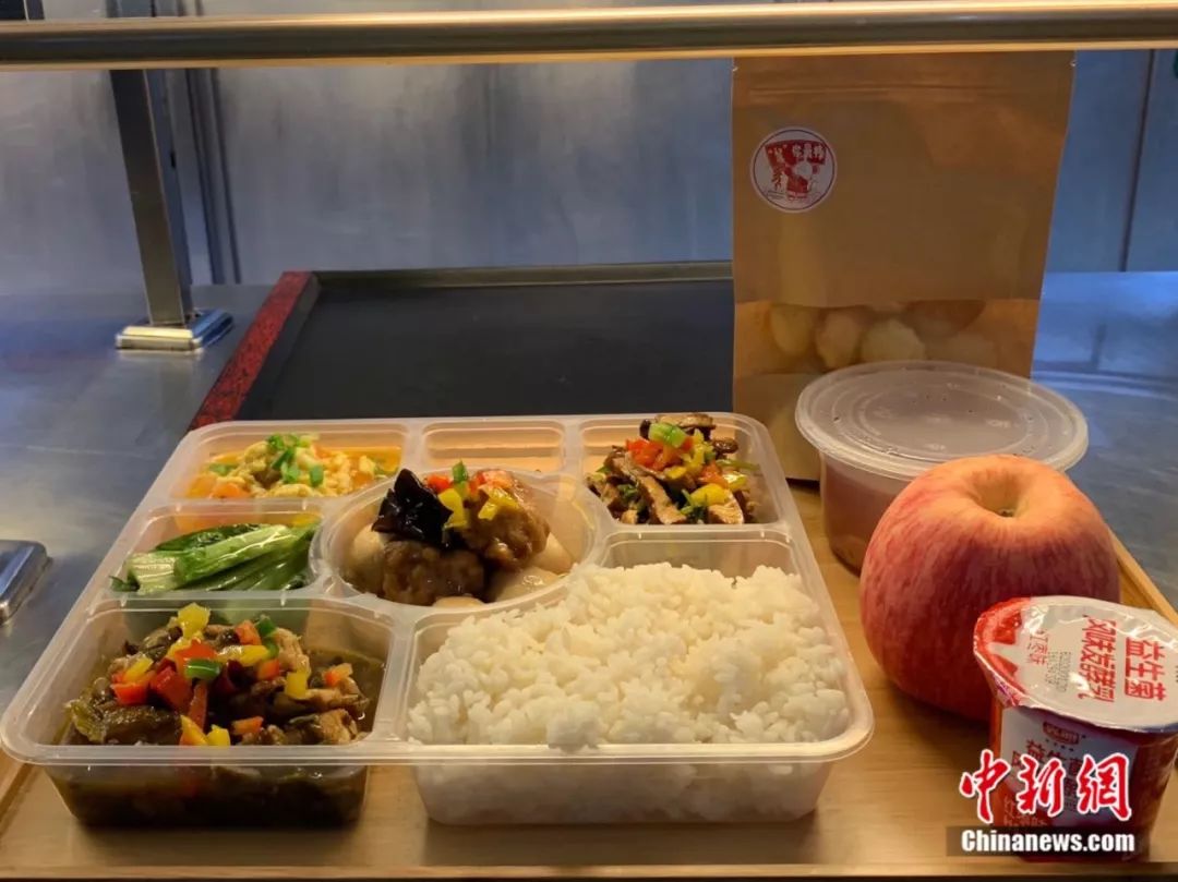 武汉大学人民医院(湖北省人民医院)食堂为隔离区医务人员准备的年夜饭。中新网 杨程晨 摄