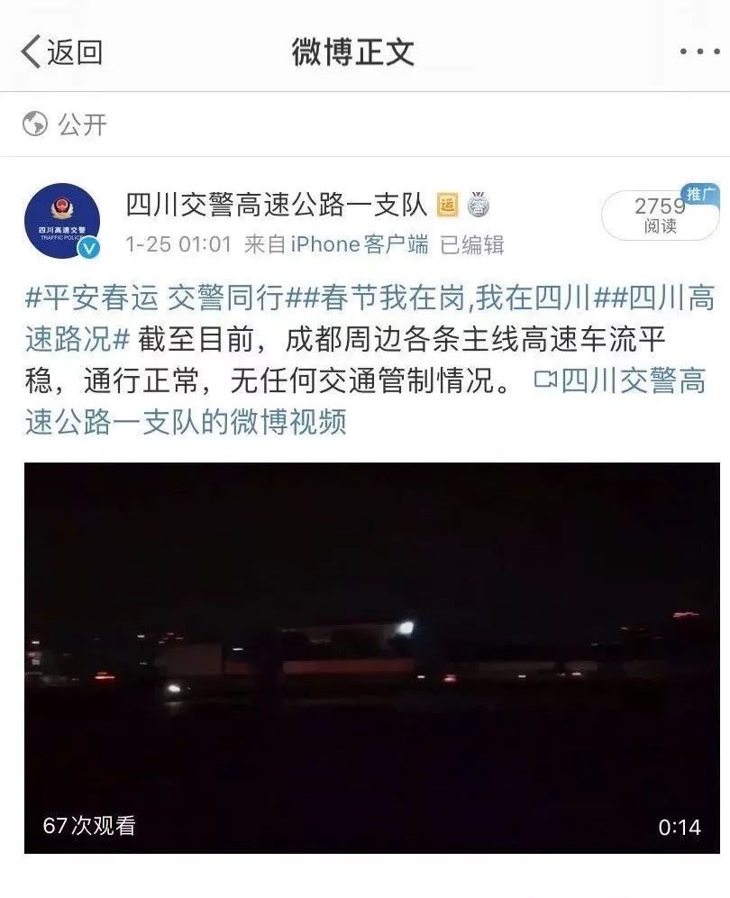 在网络上流传着各种关于四川高速封路的消息,1月25日,四川省交通运输厅高速公路管理局官方微博“四川高速”、成都交通运输官方微博分别发布消息:周边各条高速公路通行正常。