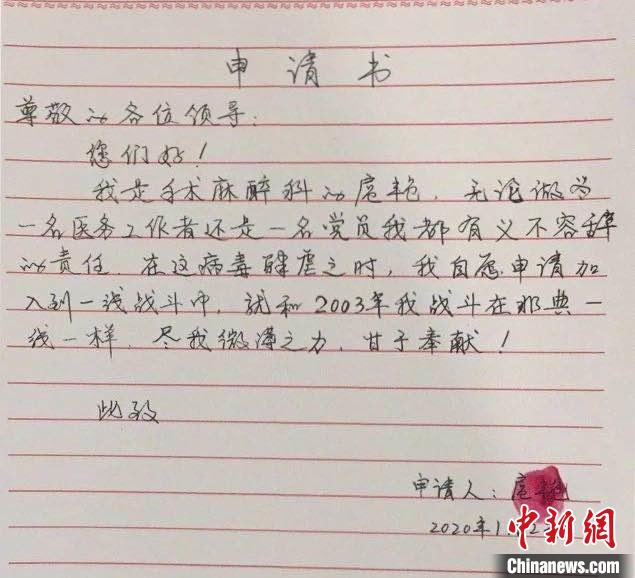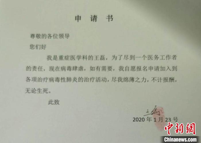 “我自愿报名申请加入到新型冠状病毒感染的肺炎的治疗活动中,尽我绵薄之力,不计报酬,无论生死。”连日来,内蒙古自治区包头市中心医院陆续收到200余名医护人员赴新型冠状病毒感染肺炎(下称新冠肺炎)救治一线的申请。