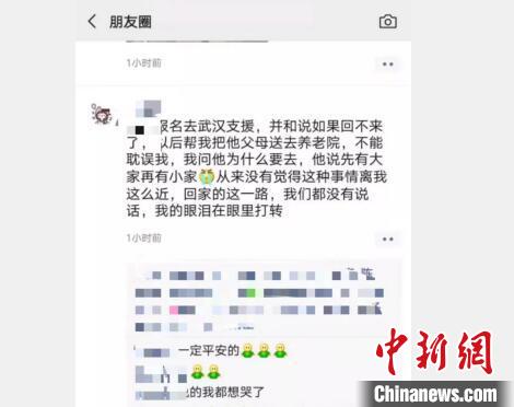 “老公报名支援武汉,并说如果回不来了,就让我把他父母送去养老院,我问他为什么要去?他说‘先有大家后有小家’。”
