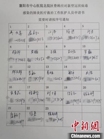 中新网襄阳1月26日电 (姚敏 肖清心)湖北襄阳出现疑似新型冠状病毒感染的肺炎患者后,该市中心医院北院区骨科医护人员纷纷主动请缨上“战场”,支援救治工作。截至26日,科室23名医护人员全部递交了申请书,目前正分批战斗在抗疫一线。