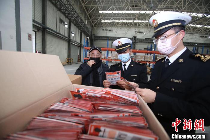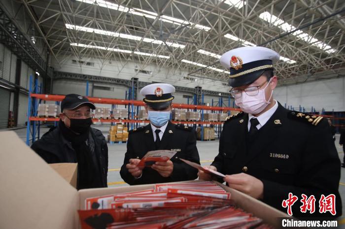 中新网宁波1月26日电(见习记者 李典)1月26日,大年初二,在浙江省宁波空港口岸通关中心,宁波海关所属机场海关的关员们正在为一批紧急进口的口罩加班办理通关手续。