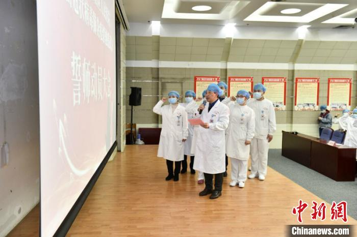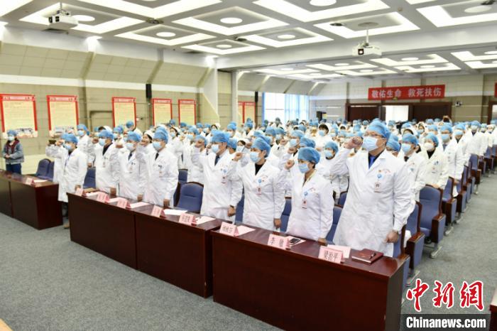 图为广西援助湖北医务人员代表宣誓 谭德军 摄