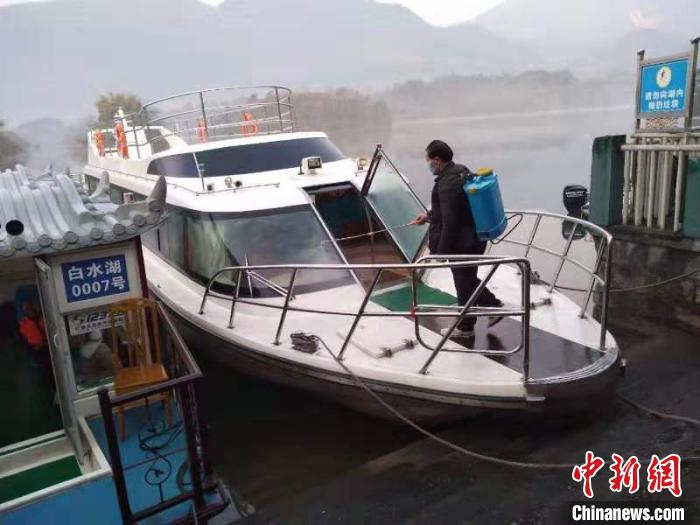 四川一旅游码头正在进行消杀作业。 钟欣 摄