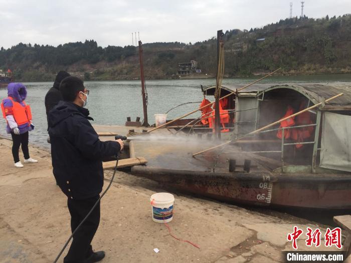 四川一水运渡口正在进行消杀作业。 钟欣 摄