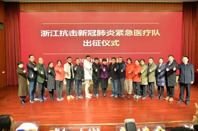 1月25日,大年初一下午,浙江省抗击新型冠状病毒感染的肺炎疫情紧急医疗队共141人(其中医务人员135名,行政管理及后勤人员5名,随队记者1名)出发驰援武汉。